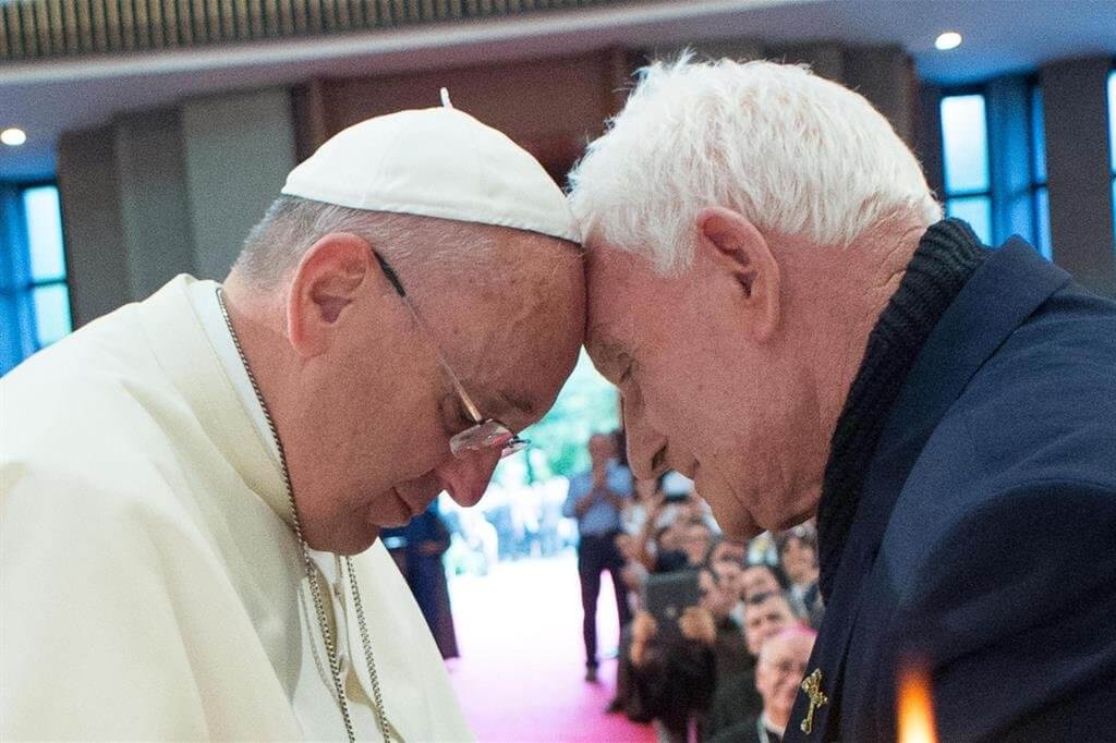 Con un gesto in effetti eccezionale, Francesco è passato sopra all’età e lo ha insignito della “porpora”: la splendida foto, scattata durante il loro primo incontro, che ritrae il papa e il vecchio prete albanese mentre le loro teste si toccano, ha giustamente fatto il giro del mondo.